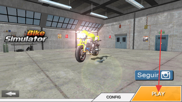 1、在游戏初始的车库场景中,点击右下角橙色【PLAY】按钮,即可开启摩托车模拟驾驶之旅。