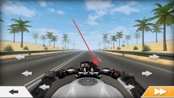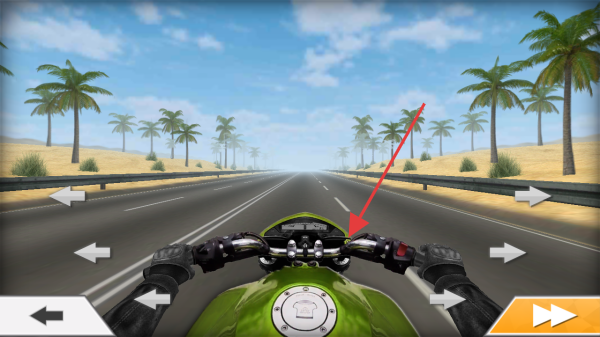 2、进入公路驾驶界面后,可通过操作摩托车把手(对应画面中车把位置)来控制行驶方向,适应公路骑行的操作手感。
