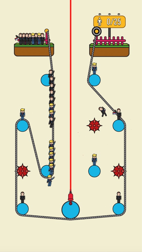 救援小分队是一款策略与操作并重的休闲益智作品,玩家需在复杂机械场景中操控绳索缠绕齿轮,以驱动平台运送小人至安全区,融合物理力学与路径规划,需精准计算绳索缠绕角度避开尖刺陷阱,在齿轮咬合的动态过程中把握运输时机,通过数百个创意关卡体验从基础缠绕到多齿轮联动的策略进阶,感受脑力与操作结合的救援挑战。