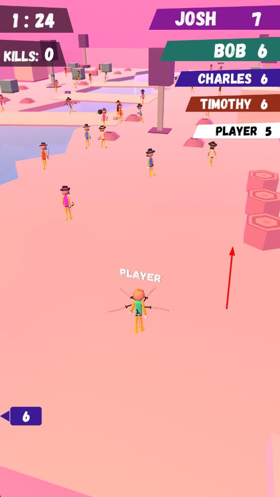 3、通过连续命中敌人积累连击数,触发“狂暴投掷”特效,在限定时间内以密集飞刀雨消灭对手,争夺战场排名。