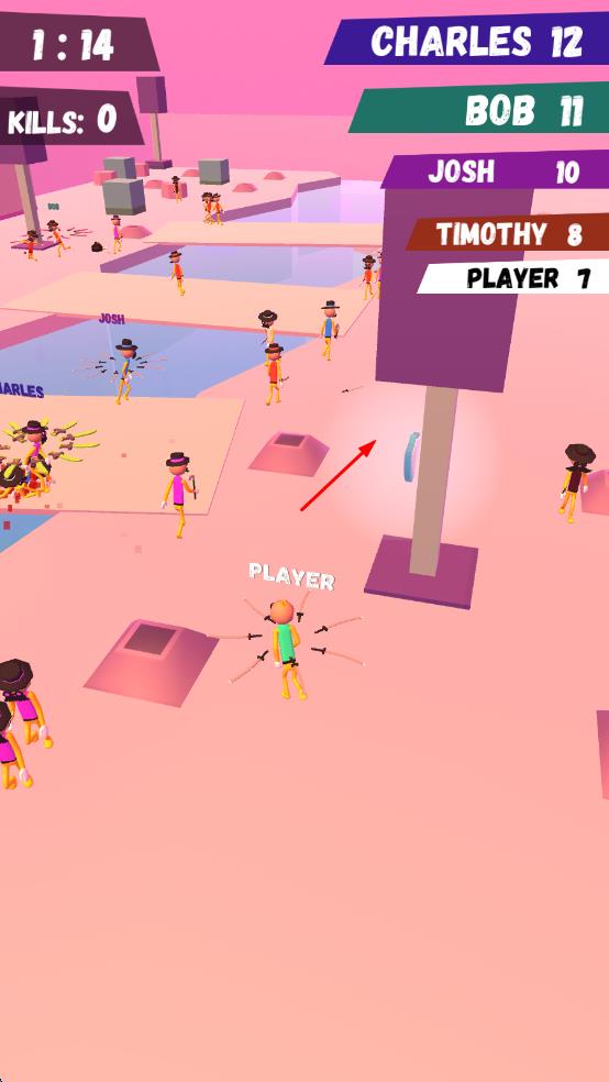 1、策略走位机制:需预判对手投掷轨迹,通过“Z字形走位”躲避攻击,同时利用地形障碍物反弹飞刀,实现弯道击杀。