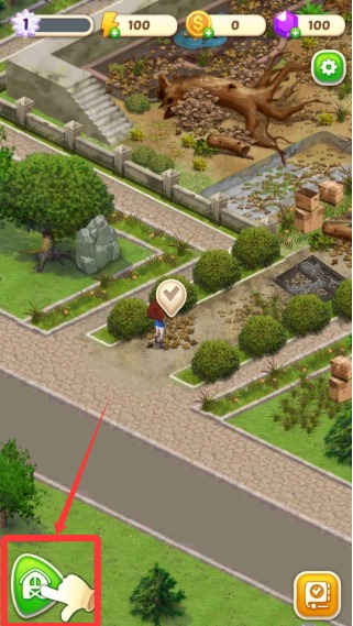 1、进入游戏后我们需要修复花园,现在的金币和物品还无法对花园进行修复,点击左下角的进入合并界面。