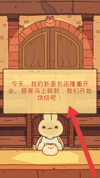 2、新面包店开业,兔子角色准备烘焙迎接顾客,“今天,我的新面包店隆重开业,顾客马上就到,我们开始烘焙吧!”,呈现开业起始剧情。