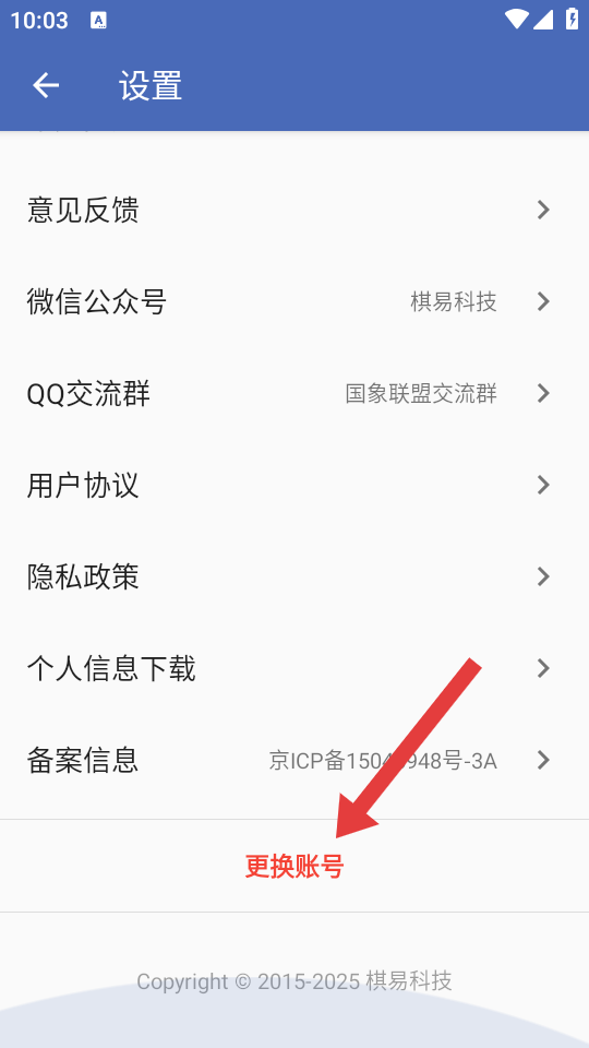 3、在设置的页面,需要点击更换账号的选项,进入登录的页面。