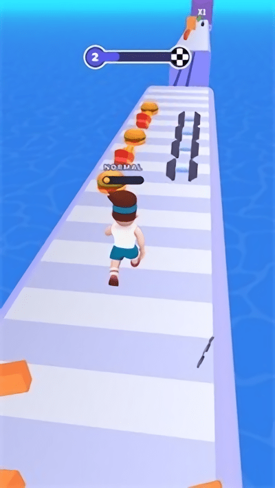 吃货冲刺是一款融合美食收集与体型变换的趣味跑酷作品,玩家操控圆滚滚的吃货小人在色彩缤纷的赛道上狂奔,沿途散落着汉堡、冰淇淋等诱人美食,以及哑铃、跳绳等健身道具,收集美食会让角色逐渐变胖,获得撞破障碍的力量;拾取健身道具则能让角色变瘦,提升穿越狭窄通道的敏捷度,感受胖瘦交替带来的跑酷新乐趣。