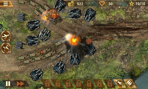3、 生存大逃杀:15辆坦克在缩小的战场中混战,收集地图中的超级武器可短暂获得压倒性优势。