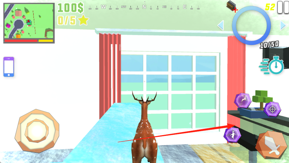 1、基础操作体系:点击屏幕控制鹿哥移动,滑动屏幕调整视角,长按屏幕触发冲刺技能,通过组合操作完成高难度破坏任务操作简单直观,让玩家专注释放破坏欲。