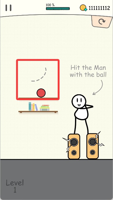 1、进入关卡后,根据小球与目标位置的关系,在合适的地方划线,引导球体朝着火柴人前进,从而完成整蛊任务。