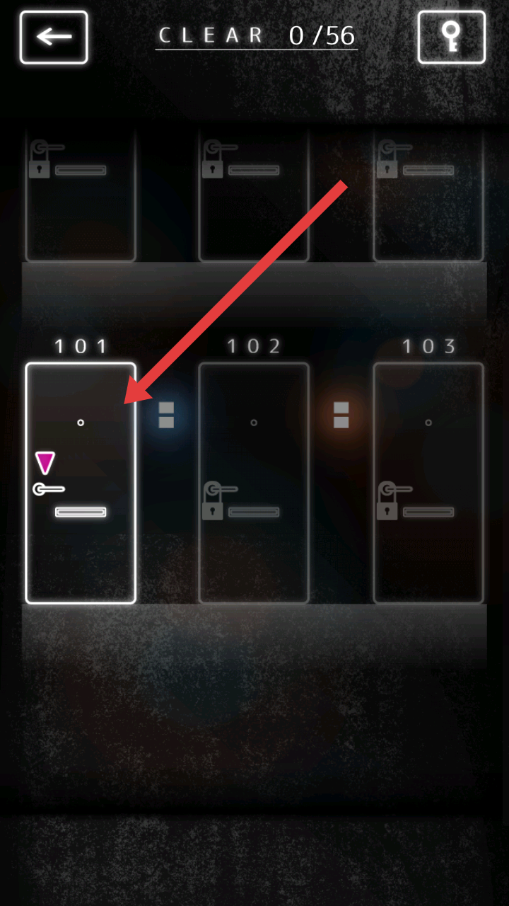 2、在游戏房间的列表中,需要选择箭头指向的【101号室】(未锁状态),进入该房间展开解谜。