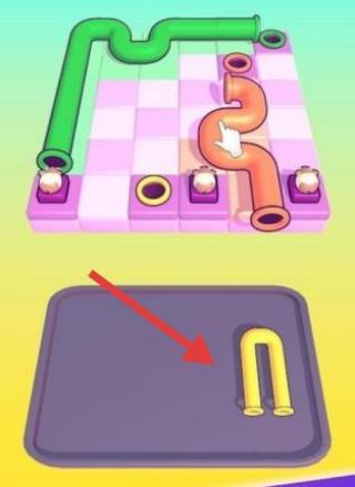 1、管道替换:从下方托盘拖动橙色“S”形管道,放置上方棋盘原橙色管道位置。