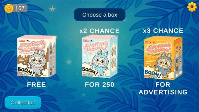 2、高度还原真实盲盒体验,玩家在购买前无法预知盒内玩偶款式,每次开箱都充满未知的惊喜和期待,完美复刻线下开盲盒的刺激感。