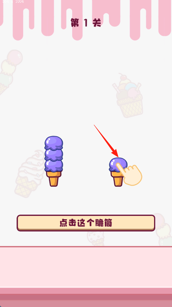 1、点击右侧单个紫色雪糕的脆筒,完成第一关操作。