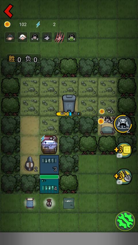 2、通过点击绿色垃圾桶消耗金币与电力抽取随机设施,包括炮塔、门、电力台等,提供攻击与防御支持。