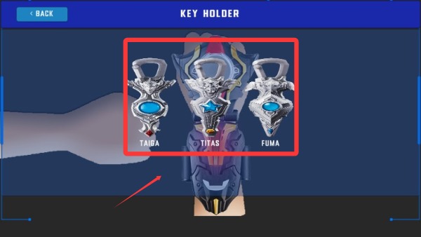 1、启动应用后,选择心仪的奥特曼形态,进入模拟操作界面,屏幕中间呈现变身器模型,底部显示能量槽与形态切换按钮。