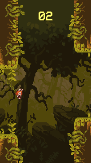 1、玩家需控制兔子在丛林中通过点击屏幕进行攀爬、跳跃,灵活利用树藤躲避障碍,完成冒险旅程。