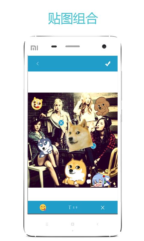 你可以见你的贴纸直接分享给你的小伙伴,让你的小伙伴们也一起互动起来,编辑组合好自己的照片直接保存分享给自己的朋友,让他们看看你的逗比的特效。