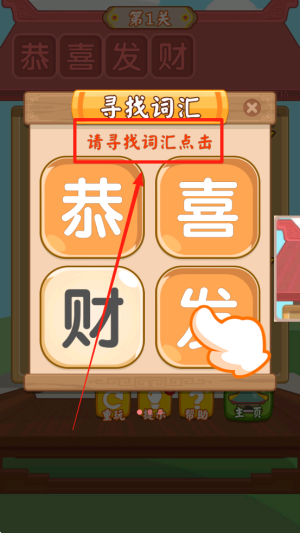 1、点击左上角灯泡图标获取通关提示,了解当前关卡的汉字组合规律与消除技巧。