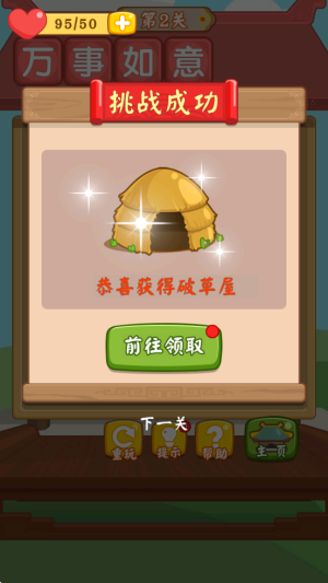 3、成功通关后自动跳转至下一关卡,解锁更具挑战性的汉字谜题与成语知识。