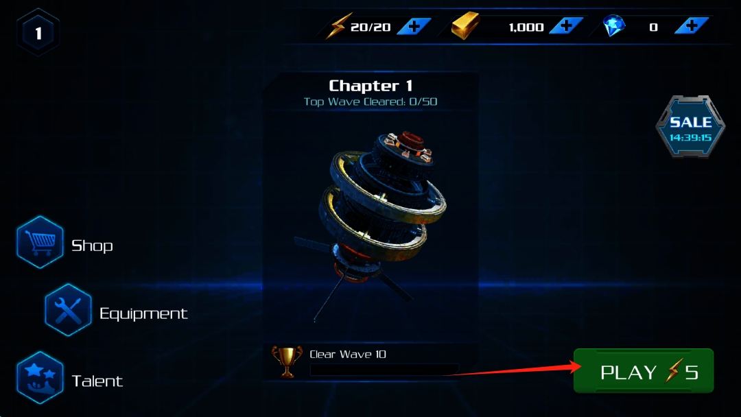 1、点击开始,通过合理搭配武器与消耗品突破难关,利用连续成功击杀触发"连击奖励"状态,通过暂停功能调整策略与查看提示。