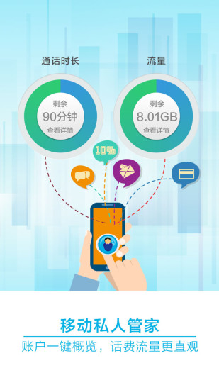 同时也包括公告、手机营业厅、我的客户代表、即时通讯(移动内测)等扩展应用模块