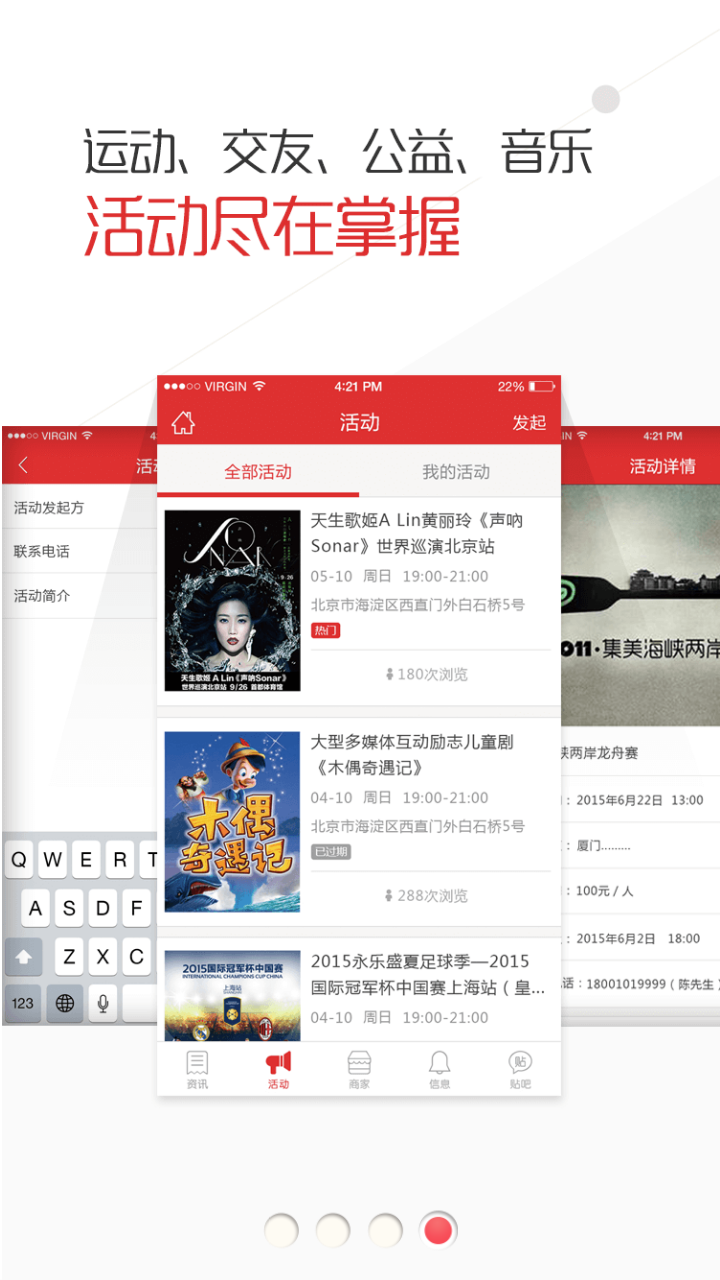 运动、交友、公益、音乐活动尽在掌握