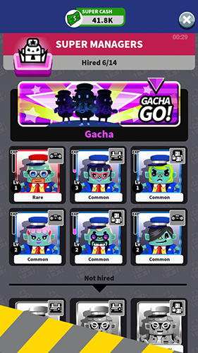 3、抽“经理Gacha”!花Super Cash,十连抽,1次必出Rare,每招1经理,自动化+20%,离线也赚钱,超重要。