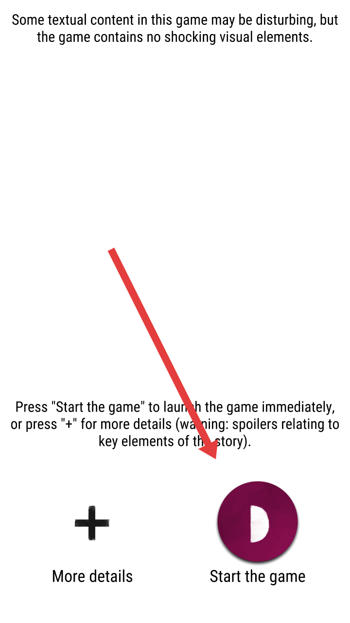 2、在游戏的提示界面,需要选择紫色【Start the game】的按钮,直接进入游戏,规避剧情剧透。