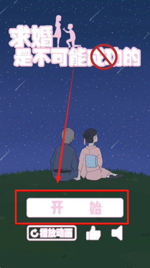 1、轻触主界面开始按钮,进入充满恶作剧趣味的求婚破坏挑战。