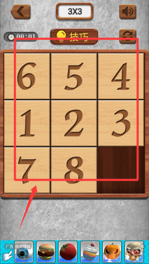 1、进入游戏后先选择华容道模式,观察当前数字排列情况。从空白格开始逐步调整顺序,按照从左到右、从上到下的规则排列整齐。