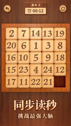 1、基础数字排列,通过滑动方块将数字按顺序归位。每次移动都需规划后续步骤,锻炼前瞻性思维。
