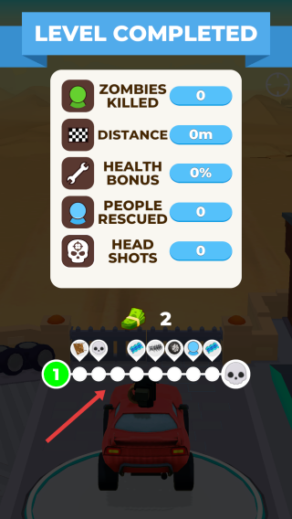 2、推进闯关:持续驾驶,躲避障碍,抵达关卡终点区域。
