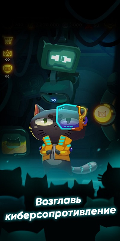 1、萌系机械猫设计:采用Q版机械猫角色造型,搭配可更换的未来科技皮肤,每只小猫拥有独特跳跃属性,带来个性化冒险体验。