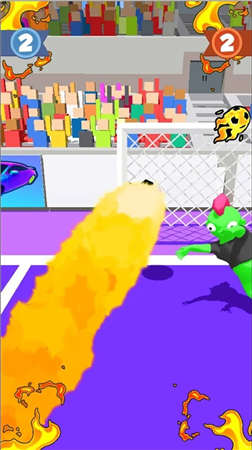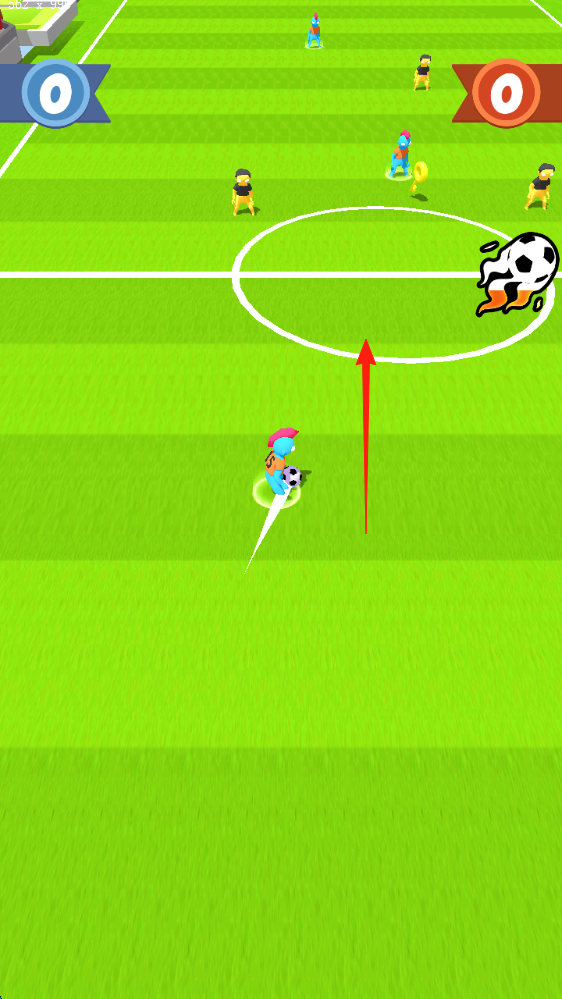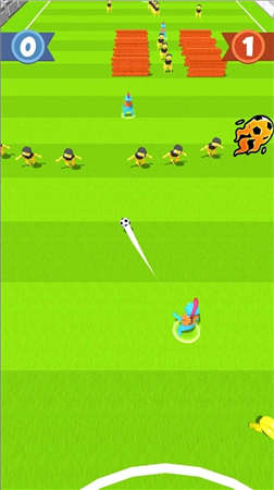 3、对抗得分突破障碍后,进入对抗区,躲避黄队防守,瞄准对方球门,完成射门得分,推进关卡,解锁新场景。