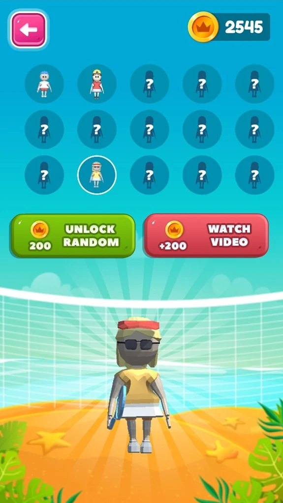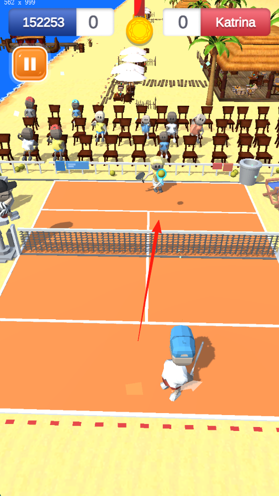 3、得分目标预判球路,精准回球,让对手接不到,累计得分赢取金牌,推进关卡,解锁新对手、场地。