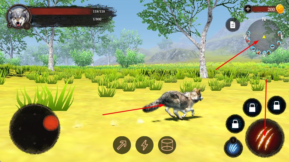 1、猎物追踪捕猎操作:通过嗅觉系统追踪猎物气味,利用草丛遮蔽潜行靠近,把握时机发动突袭,考验策略与反应速度。