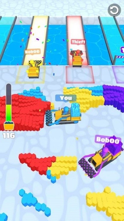 2、设备自定义改装:可使用金币对挖掘机、运输车进行性能改装,如加装涡轮增压提升挖掘速度,更换耐磨轮胎适应复杂地形。