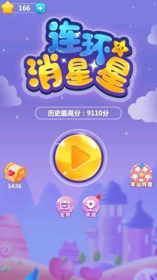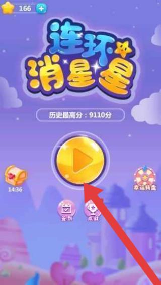2、返回主界面,点击播放按钮(红箭头指向),开启《连环消星星》消除关卡,冲击高分。
