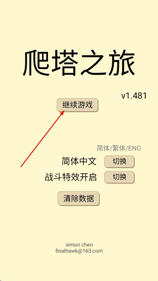 1、进入游戏界面后,点击【继续游戏】按钮开启征程,这是踏入冒险世界的关键操作,确保顺利开启爬塔之旅。