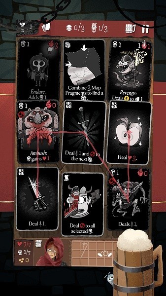 1、滑动手指连接卡牌形成combo,用火球术烤蘑菇还是用盾牌砸地精全看你手速。