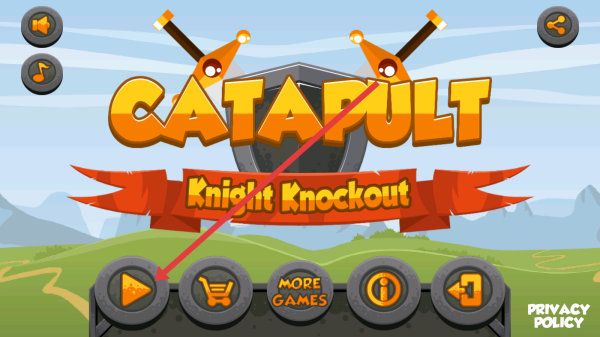 1、在主界面,点击播放按钮(红箭头指向),进入《Catapult:Knight-Knockout》,开启弹射挑战。