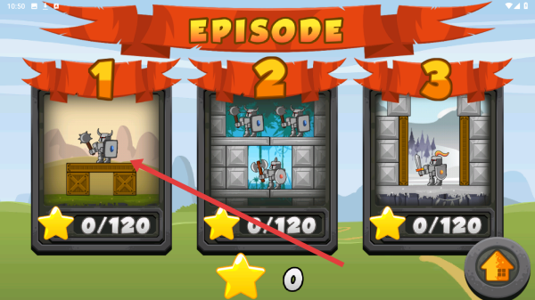 2、选“EPISODE1”(红箭头指向),进入第一章,挑战对应关卡,尝试击倒骑士。
