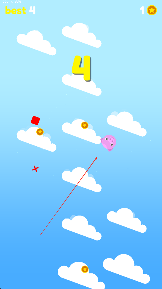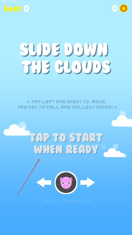 1、进入游戏后在云层选择界面点击开始,滑动屏幕旋转初始云层,调整坡度使小猪沿白色指引线开始下滑,首次闯关可通过新手动画熟悉重力感应操作。