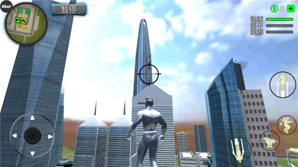 1、城市守护玩法:在开放世界中巡逻,阻止反派破坏城市设施,利用龙卷风卷飞坦克,光束射击击落敌方飞机。