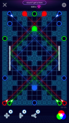 2、渐进式挑战关卡矩阵:丰富关卡从基础单色折射逐步升级至多色激光融合挑战,每关暗藏独特的光学逻辑陷阱,持续激发探索新解法的好奇心与征服欲。