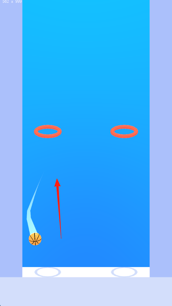 2、关卡目标让篮球连续穿过圆环,避开失误(落到底部),积累完美弹射次数,推进关卡。