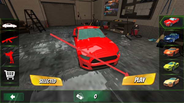 2、选红色载具,通过点击【PLAY】,选择驾驶车辆,在城市中执行任务,推进游戏进程。