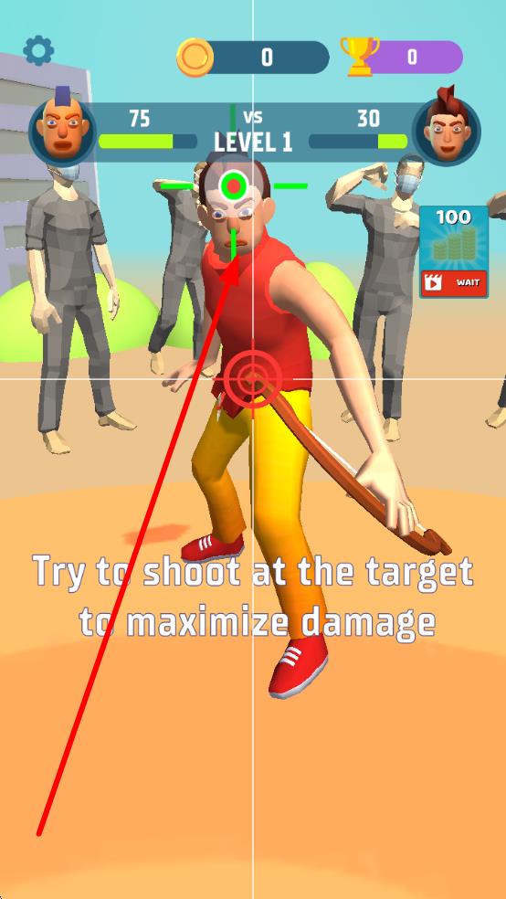 3、武器养成:使用金币升级弓箭属性,搭配箭袋、瞄准镜等配件提升稳定性与射程,应对后期高难度挑战。