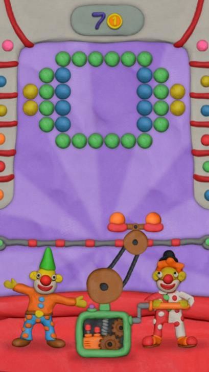 1、匹配消除:观察黏土球颜色分布,调整发射角度,发射小球匹配同色,实现消除,清空目标区域。