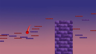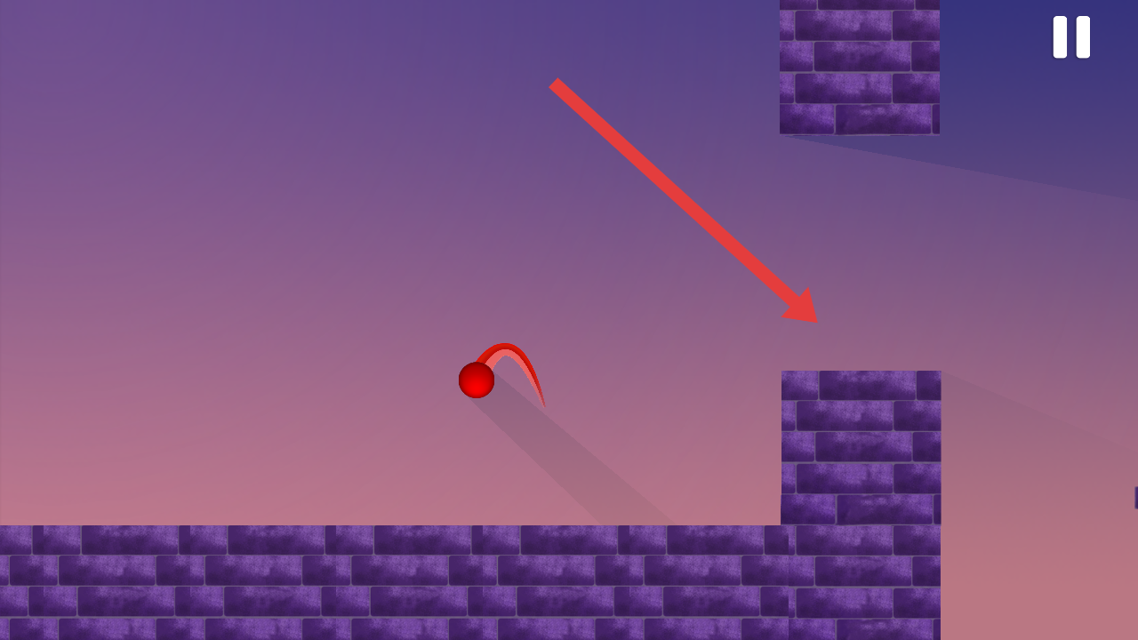 2、在Red Ball Jump 2游戏中点击屏幕,操控红色小球跳跃,跨越紫色砖墙等障碍,积累分数。
