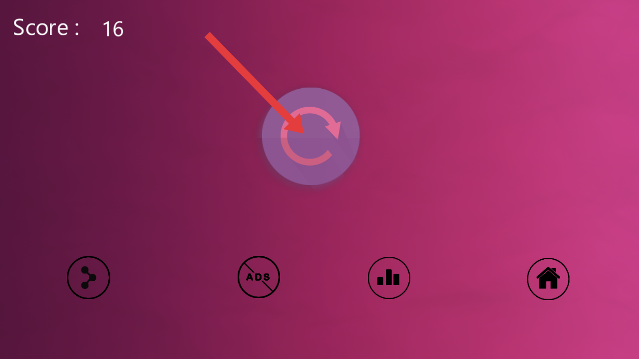 3、游戏结束后,需要点击中间循环箭头的按钮,重新挑战,突破当前16分的纪录。